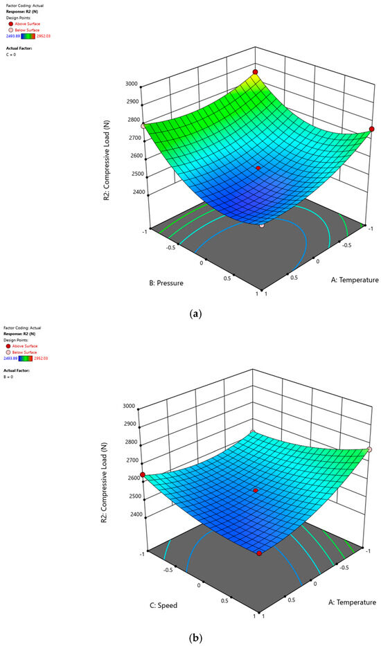 3.2. Effects of Process Parameters on Compression Performance Using Response Surface Graphs