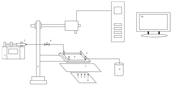 Experimental apparatus diagram. 1 Micro-injection pump. 2 Injection syringe. 3 Microscope. 4 Valve. 5 Micro-visualization model holder. 6 Micro-visualization model. 7 Heating plate. 8 Parallel light source. 9 Liquid recovery collection container. 10 Image acquisition computer.