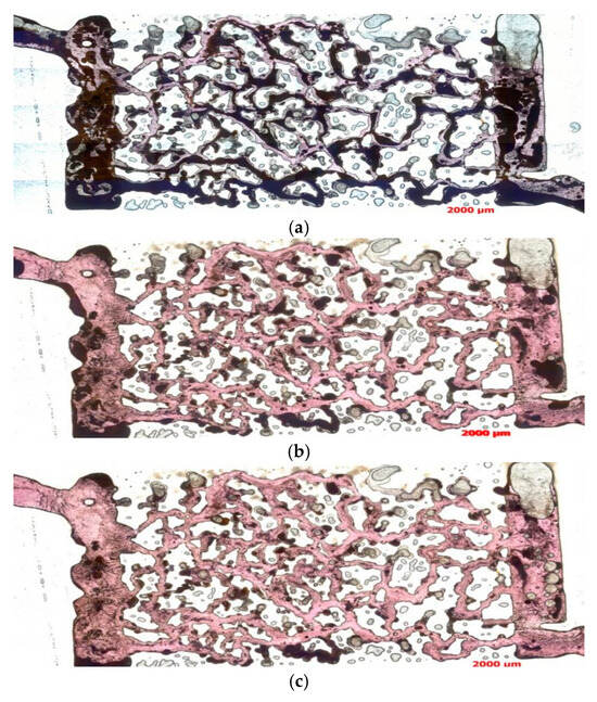 The oil displacement effect images from Experiment 2 are as follows. (a) Binary composite flooding (10 PV) displacement effect. (b) Binary composite flooding (20 PV) displacement effect. (c) Binary composite flooding (80 PV) displacement effect.