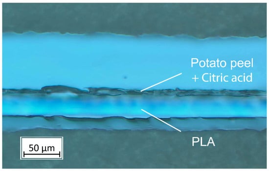 Cross-section of a PLA–potato peel bi-layer obtained by light microscopy.