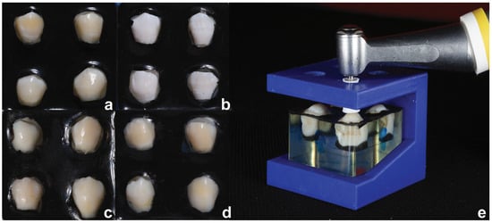 A sample size of 78 extracted permanent premolars were calculated using GPower version 3.1.9.7, with a significance level of 0.05 and a power of 0.95 (standard deviation of means from a pilot study: 5.63, unpublished data). The teeth were cleaned with an ultrasonic cleaner and a non-fluoride pumice paste and then stored in 0.1% thymol at 4 °C to disinfect and maintain their structural integrity. Each tooth was sectioned at the cementoenamel junction to remove the root, preserving the crown.