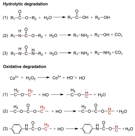 - Xie, F.; Zhang, T.; Bryant, P.; Kurusingal, V.; Colwell, J.M.; Laycock, B. Degradation and stabilization of polyurethane elastomers. Prog. Polym. Sci. 2019, 90, 211–268. [Google Scholar] [CrossRef]