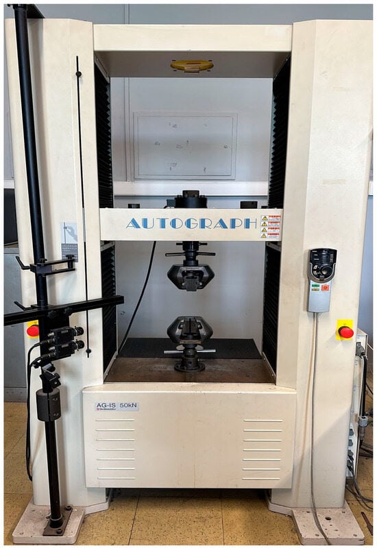 Stress–strain curve and mechanical properties of membranes (elasticity modulus, tensile strength, and elongation at break) were determined by tensile test. Tensile tests were conducted using a universal testing machine (Shimadzu AG-IS 50 kN) (Figure 2). Tensile tests were conducted under a strain rate of 1% per minute.