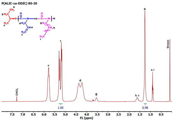 1H NMR spectrum of the sample P(ALIC–co–DDIC) 80/20 in CDCl3.