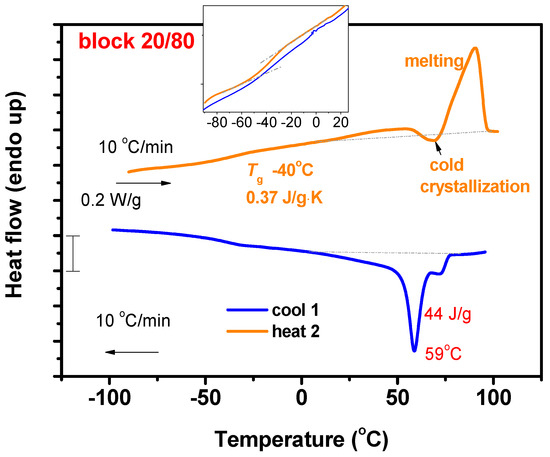 DSC thermograms for the P[DDIC-b-(DDIC-co-ALIC)] block copolymer.