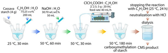 - Adeyanju, O.; Olademehin, O.P.; Hussaini, Y.; Nwanta, U.C.; Adejoh, A.I.; Plavec, J. Synthesis and Characterization of Carboxymethyl Plectranthus Esculentus Starch. A Potential Disintegrant. J. Pharm. Appl. Chem. 2016, 2, 189–195. [Google Scholar] [CrossRef]