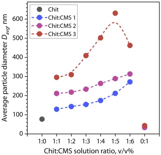 3.2. Effect of the Biopolymer Ratio Chit:CMS v/v% in the Formation of PEC
