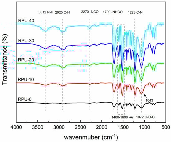 Infrared spectra of RPU with different recovery polyol substitution rates.