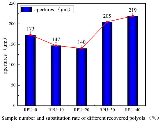 The relationship between the different substitution rates of recovered polyols and pore size is shown in Figure 16.