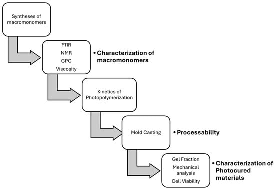 The GPC analysis results are summarized in Table 2. All macromonomers showed a similar Mn ~7000 g/mol (comparable to PhotoBioCure® material), and a dispersity index (D) of 1.64–1.74. Notably, the molecular weights (Mw) of the obtained macromonomers were comparable to those from our previous work [30], despite the use of a different catalyst.