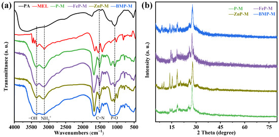 (a) FTIR and (b) XRD spectra of BPM flame retardant.