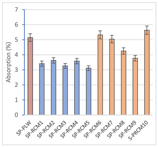 Absorption (%) of SP-PLW and SP-RCM panels.