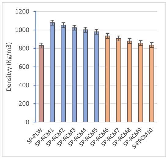 Density (kg/m3) of SP-PLW and SP-RCM panels.