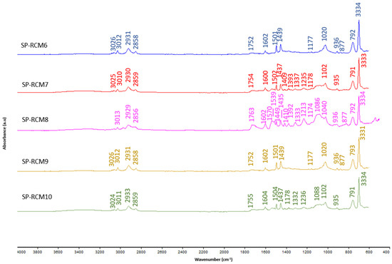 FTIR patterns: SP-RCM6–SP-RCM10.