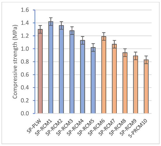 Compressive strength (MPa) of SP-PLW and SP-RCM panels.
