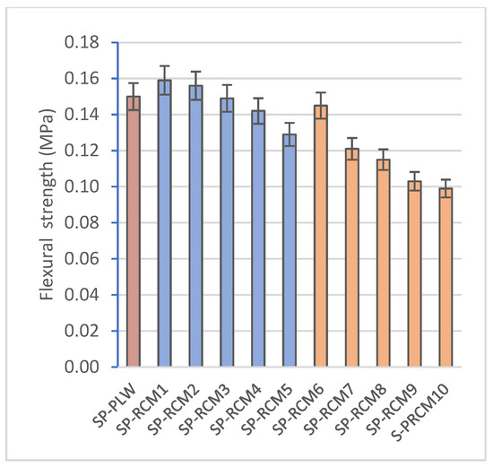 Flexural strength (MPa) of SP-PLW and SP-RCM panels.
