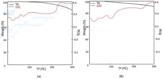 Curves TG-DSC: (a) SP-RCM1 and (b) SP-RCM6.