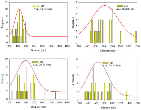 Average diameters and normal distributions of samples M1, M2, M3, and M4.