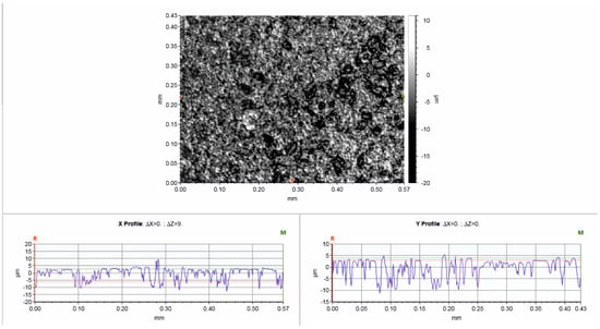 A large-scale top view of the morphology of SBS/GNPs films was enabled using the 3D profiler. A rough surface on the micrometre level is observable in Figure 4. The film surface shows a relief morphology with valleys and holes ranging from shallow to deep, reaching down to the substrate. The block co-polymer forms a bi-phasic structure (polystyrene, PS, and polybutadiene, PB, phases) embedding the GNPs resulting in a granular-like surface appearance. The restacking of GNPs may also occur as a result of the destabilisation of the dispersion during drying.
