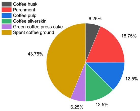 Pie chart of different types of coffee residues utilized for cellulose isolation.