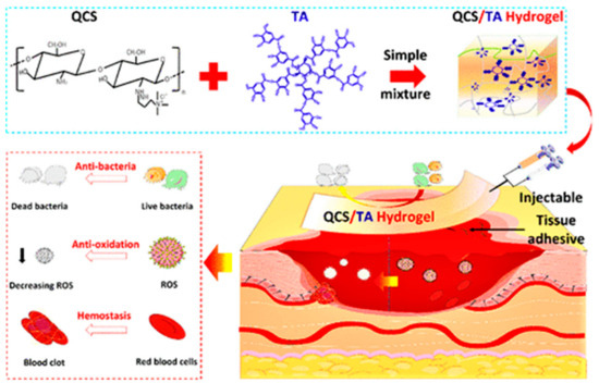 - Liu, H.; Wang, C.; Li, C.; Qin, Y.; Wang, Z.; Yang, F.; Li, Z.; Wang, J. A functional chitosan-based hydrogel as a wound dressing and drug delivery system in the treatment of wound healing. RSC Adv. 2018, 8, 7533–7549. [Google Scholar] [CrossRef]