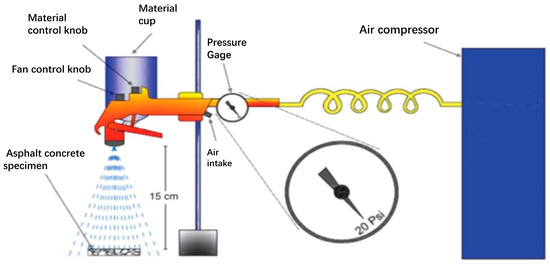 The AC-16 asphalt mixture was designed in accordance with T 0702–2011 technical specifications [37]. The content ratio of asphalt binder to aggregates was 4.6%. After heating the aggregates at 170 °C for 6 h, the heated aggregates were incorporated and agitated for 60 s. Then, the heated asphalt binder at 165 °C was added and agitated for 90 s. At last, the asphalt mixtures were compacted double sided, and the standard Marshall specimens were obtained. The diameter of the specimen was 101.6 mm and the height of the specimen was 63.5 mm.