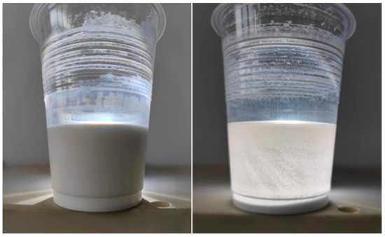 Ultrasonically dispersed (left) and magnetically stirred (right) ZnO-3 sample (after standing for 24 h).