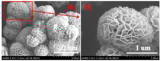 The surface morphologies of as-prepared SIS, NWF, PNWF and SIS/PNWF-10% substrates were observed by SEM. The pure SIS displays noticeable 3D hierarchical urchin-like microspheres with an average diameter of approximately 1–2 µm (Figure 1(a1)). The high magnification SEM image (Figure 1(a2)) further demonstrates that the urchin-like microspheres are fabricated by in situ self-assembly of the 2D disordered nanosheets, which is consistent with our previous work [48].