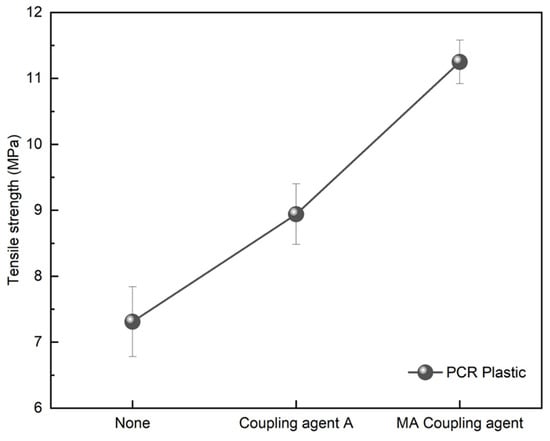 Tensile strength variation of PCR plastic with a coupling agent application.