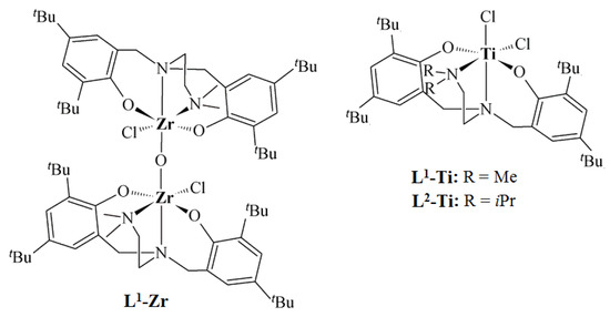 Structures of titanium and zirconium complexes with diamine-bis(phenolate) ligands [24].