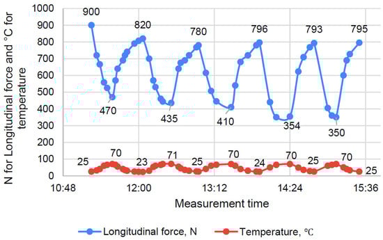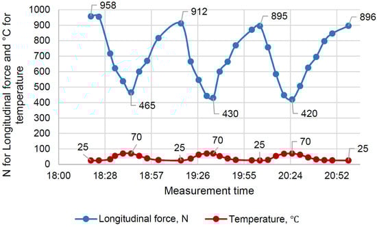 The time-temperature-force dependencies are presented in Figure 9 and Figure 10 for EP and EP-TR, respectively.