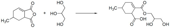 The proposed mechanism of reaction between glycerol and isomers of methyltetrahydrophtalic anhydride.