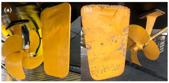 Several commercial products are available on the market, developed by leading marine paint companies such as Propspeed, International, and Hempel. Figure 1 shows the results of a commercial coating system after 16 months of field trial. The coating system was developed explicitly for propellers. Figure 1b shows that the commercial coating system has excellent performance even after 16 months of testing. Although the coating system suffered damage in the cavitation-prone area, most parts of the coating showed excellent adhesion to the underwater running gear.