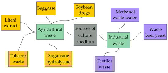 The microbial synthesis method is a pattern to generate BNC, and can be mainly divided into static-culture and stirred-culture methods based on fermentation conditions. Different cultivation modes may result in different performances and structures of BNC, as shown in Table 5. The growth of bacteria and the production of bacterial cellulose demand culture medium; therefore, fermentation substrates (culture medium compositions) have a significant effect on the yield and expenditure of bacterial cellulose. Recently, low-cost carbon sources have been developed to optimize the production of bacterial cellulose. Some carbon sources used as culture medium materials for preparing bacterial cellulose are presented in Figure 2.