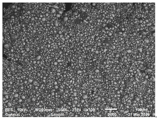 Microphotograph of a 60% suspension of aluminum powder (scanning electron microscope JSM-6510 LV, JEOL, Akishima, Japan).