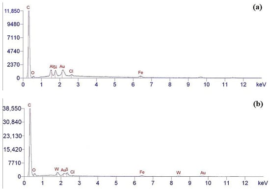The elemental composition of the surface of the pristine and aminoacetic acid-functionalized ND particles was determined by the EDX method. Analysis of the data obtained shows that the chemical composition of the pristine NDs fully corresponds to the composition claimed by the manufacturer, Figure 5a. Using the EDX analysis of the pristine NDs, carbon was detected, which corresponds to the chemical composition of the nanodiamond; additionally, a small amount of oxygen was found on the surface, which corresponds to the presence of hydroxyl groups on the surface of nanoparticles, Figure 5a.