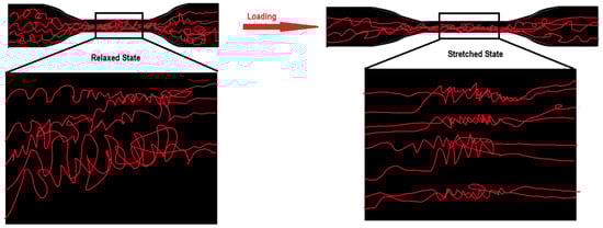 Microstructural changes in polyurea upon tensile loading (adapted from [32]).