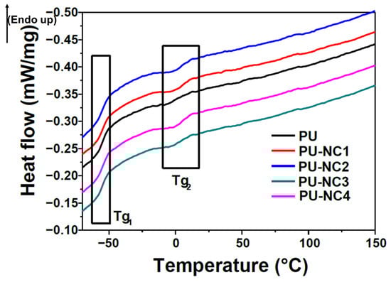 DSC curves obtained for polyurea–polyurethane–MWCNTs nanocomposites (from [80]).