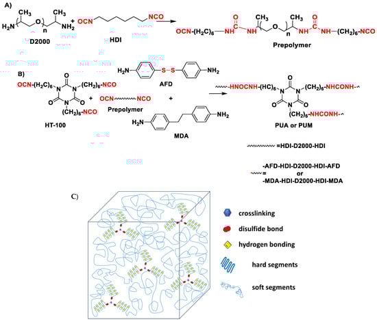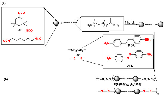 - Li, T.; Zheng, T.; Han, J.; Liu, Z.; Guo, Z.-X.; Zhuang, Z.; Xu, J.; Guo, B.-H. Effects of Diisocyanate Structure and Disulfide Chain Extender on Hard Segmental Packing and Self-Healing Property of Polyurea Elastomers. Polymers 2019, 11, 838. [Google Scholar] [CrossRef] [PubMed]