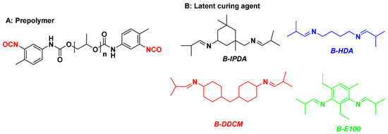 Commercial polyurea formulations differ according to the amine resin composition, which consists of a long-chain diamine (soft segment), a short-chain diamine (chain extender), and the diisocyanate component [8]. One of the key ingredients in the production of polyurea is represented by isocyanates, which can be categorized as aliphatic, aromatic, bifunctional, or heterobifunctional by nature. Toluene diisocyanate (TDI), 4,4’-diphenylene methane diisocyanate (MDI), naphthalene diisocyanate (NDI), and p-phenylene diisocyanate (pPDI) are examples of aromatic isocyanates used for obtaining polyurea coatings. The most commonly used aliphatic isocyanates are 1,6-hexane diisocyanate (HDI) and isophorone diisocyanate (IPDI). High-molecular-weight amine-terminated polyethers are employed in polyurea synthesis, but also low-molecular-weight amines, e.g., diethylenetriamine (DETA) and triethylenetetramine (TETA), are frequently utilized as chain extenders for aliphatic polyurea, while diethyl-toluenediamine (DETDA) or dimethylthio-toluenediamine (DMTDA) is included in the formulations for aromatic polyurea. Aromatic amines and the compounds that possess secondary amine functionalities slow down the polymerization reaction remarkably [8], allowing the processability of the reaction mixture and an easier application of the coating on the targeted substrate.