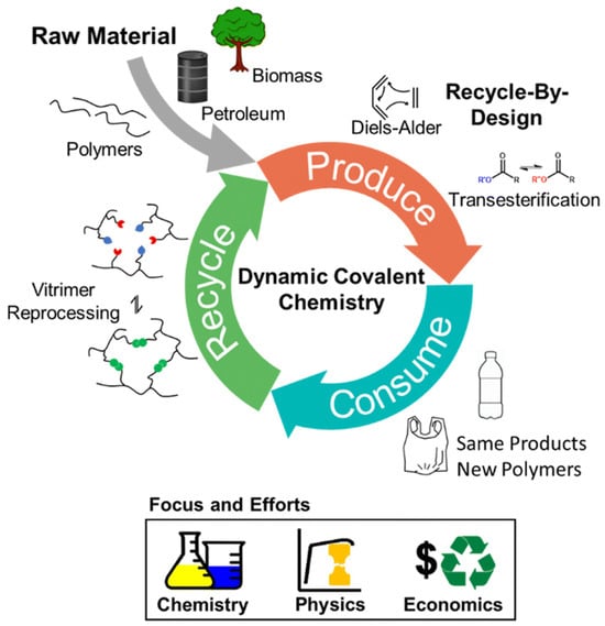 - Yan, T.; Balzer, A.H.; Herbert, K.M.; Epps, T.H.; Korley, L.T.J. Circularity in polymers: Addressing performance and sustainability challenges using dynamic covalent chemistries. Chem. Sci. 2023, 14, 5243–5265. [Google Scholar] [CrossRef]