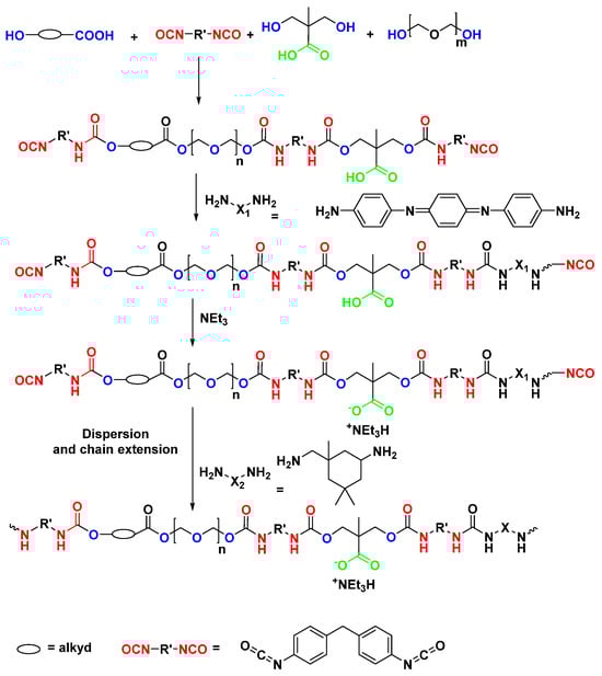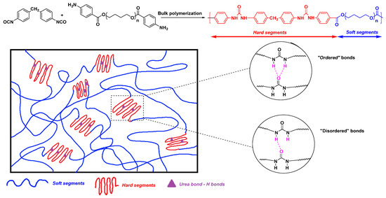 Schematic exemplification of the reaction of diisocyanate with diamines of varying molecular weight (adapted from [74]).