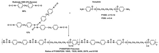 - Pangon, A.; Dillon, G.P.; Runt, J. Influence of mixed soft segments on microphase separation of polyurea elastomers. Polymer 2014, 55, 1837–1844. [Google Scholar] [CrossRef]
