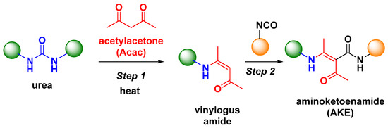 - Ma, Y.; Jiang, X.; Yin, J.; Weder, C.; Berrocal, J.A.; Shi, Z. Chemical Upcycling of Conventional Polyureas into Dynamic Covalent Poly(aminoketoenamide)s. Angew. Chem. Int. Ed. 2023, 62, e202212870. [Google Scholar] [CrossRef] [PubMed]