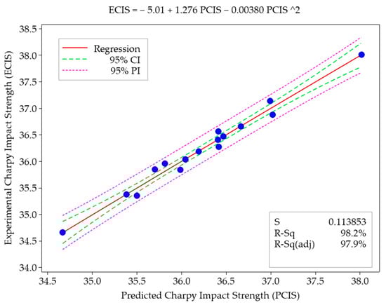 - The regression model successfully predicted impact strength (R2 = 98.16%), validated with a low prediction error (0.34%).