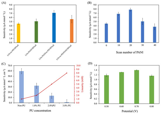 3.3. Analytical Performances of the Optimized PU/LOx/PANI/m-PD/SPAuE