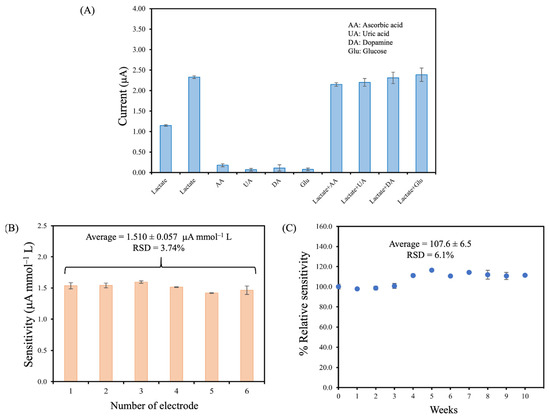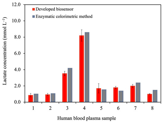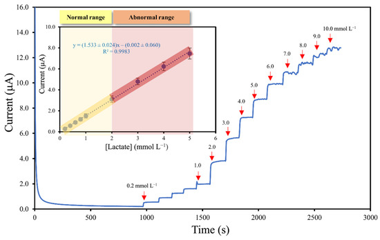 - Cunha-Silva, H.; Arcos-Martinez, M.J. Dual Range Lactate Oxidase-Based Screen Printed Amperometric Biosensor for Analysis of Lactate in Diversified Samples. Talanta 2018, 188, 779–787. [Google Scholar] [CrossRef]