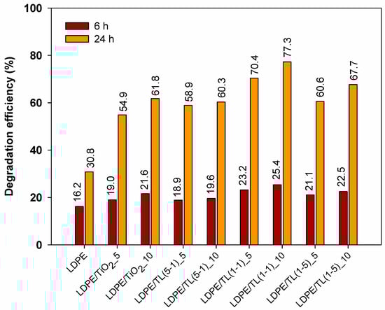 Degradation efficiency of pure LDPE and its composite films.