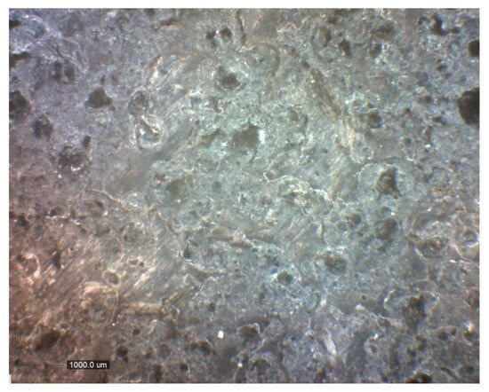 Figure 1 presents the optical image of CuSe antifouling coating at 4×. It can be appreciated that this coating presents a not-homogeneous distribution due to the formation of bubbles during the drying and curing of the coating. Imperfections on the surface can be observed even when different layers of the coating are applied.