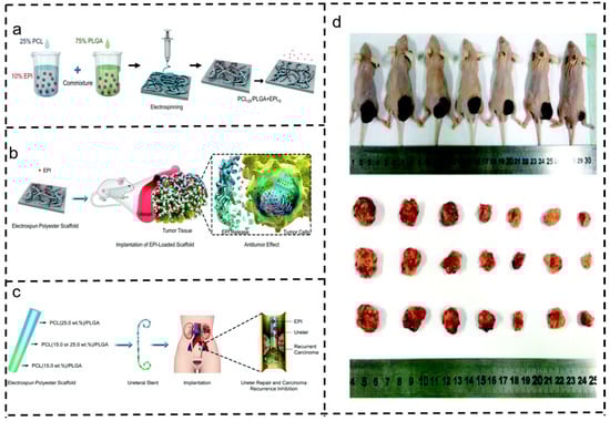 - Wang, J.; Wang, G.; Shan, H.; Wang, X.; Wang, C.; Zhuang, X.; Ding, J.; Chen, X. Gradiently degraded electrospun polyester scaffolds with cytostatic for urothelial carcinoma therapy. Biomater. Sci. 2019, 7, 963–974. [Google Scholar] [CrossRef]
